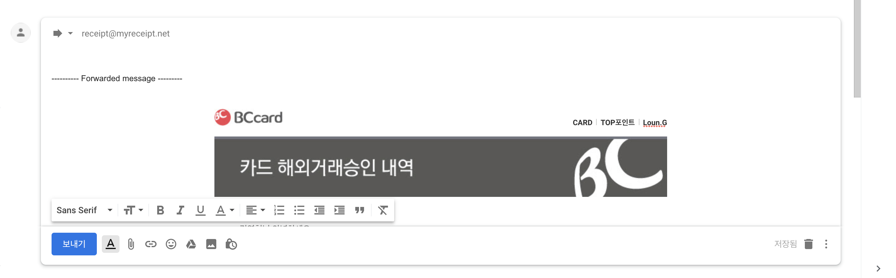 receipt@myreceipts.net 로 이전 결제 메일을 전달 합니다.