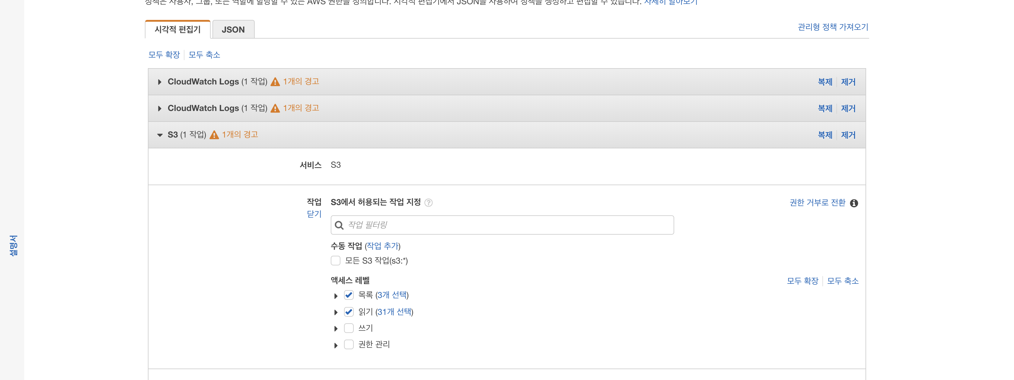 서비스 항목에는 S3를 찾아 선택합니다.