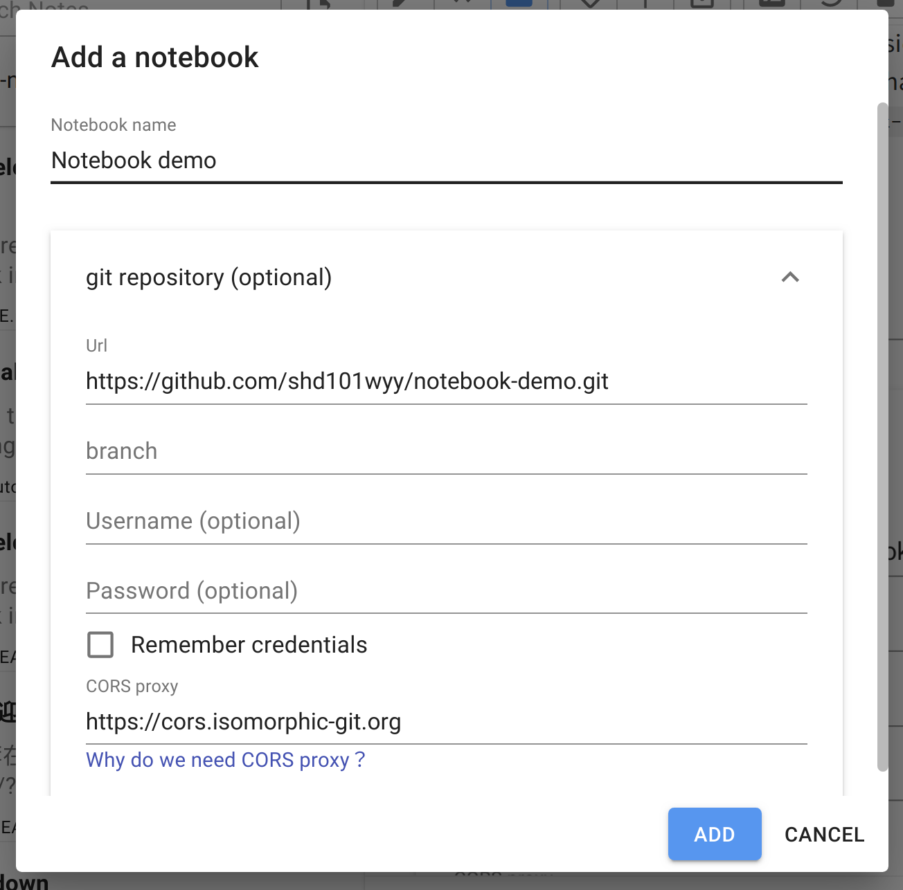 Click the ADD button to add the notebook.