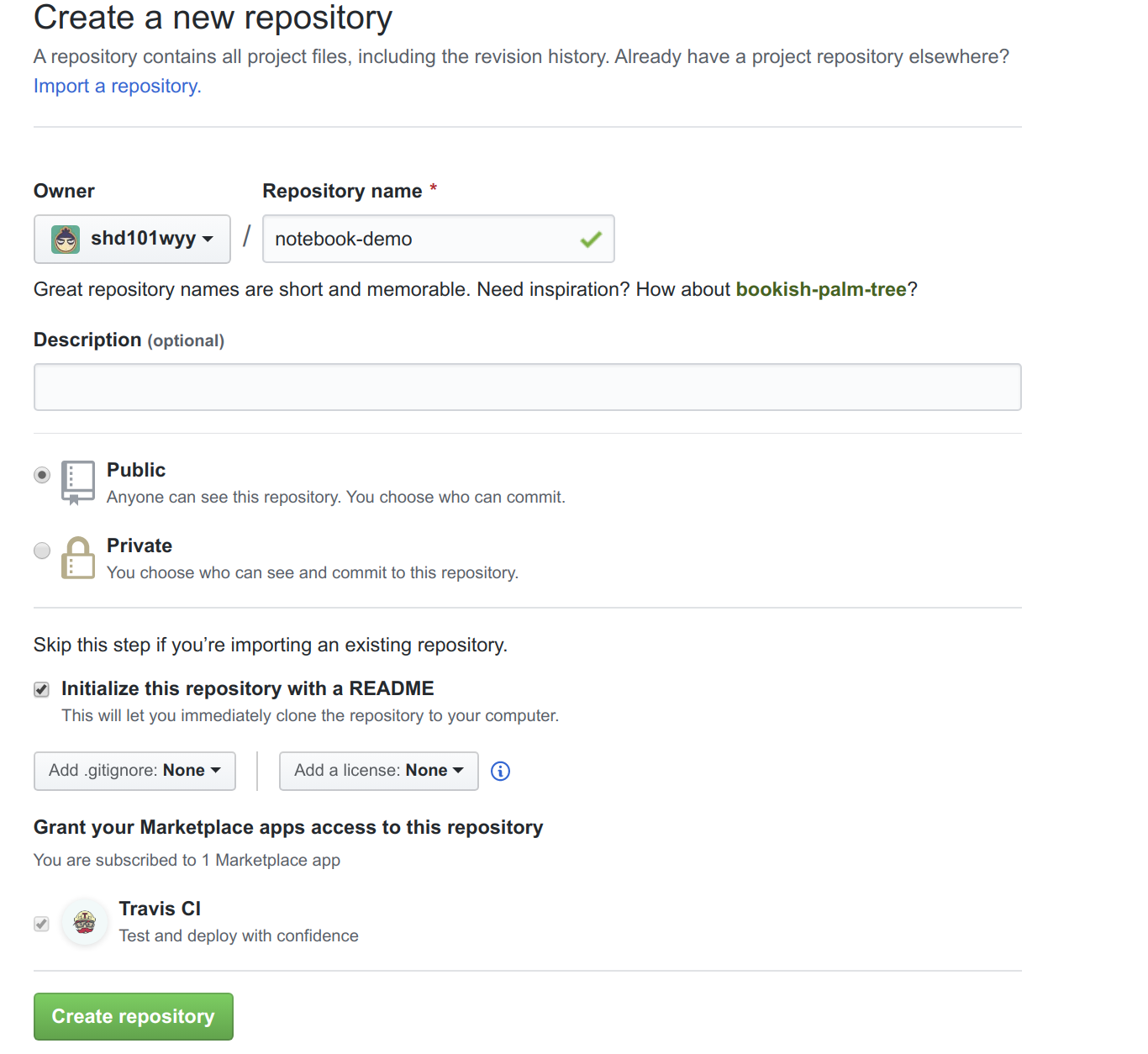 For example, below I created a git repository with name notebook-demo,