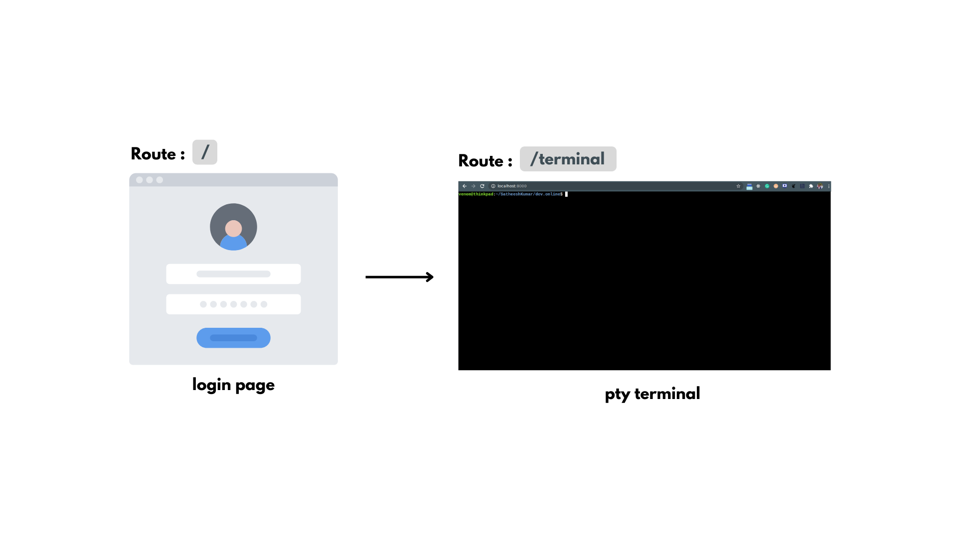 I think it might be interesting to not put the terminal on the first route / by /terminal for example and put a home or login page there, that would be really better I think.