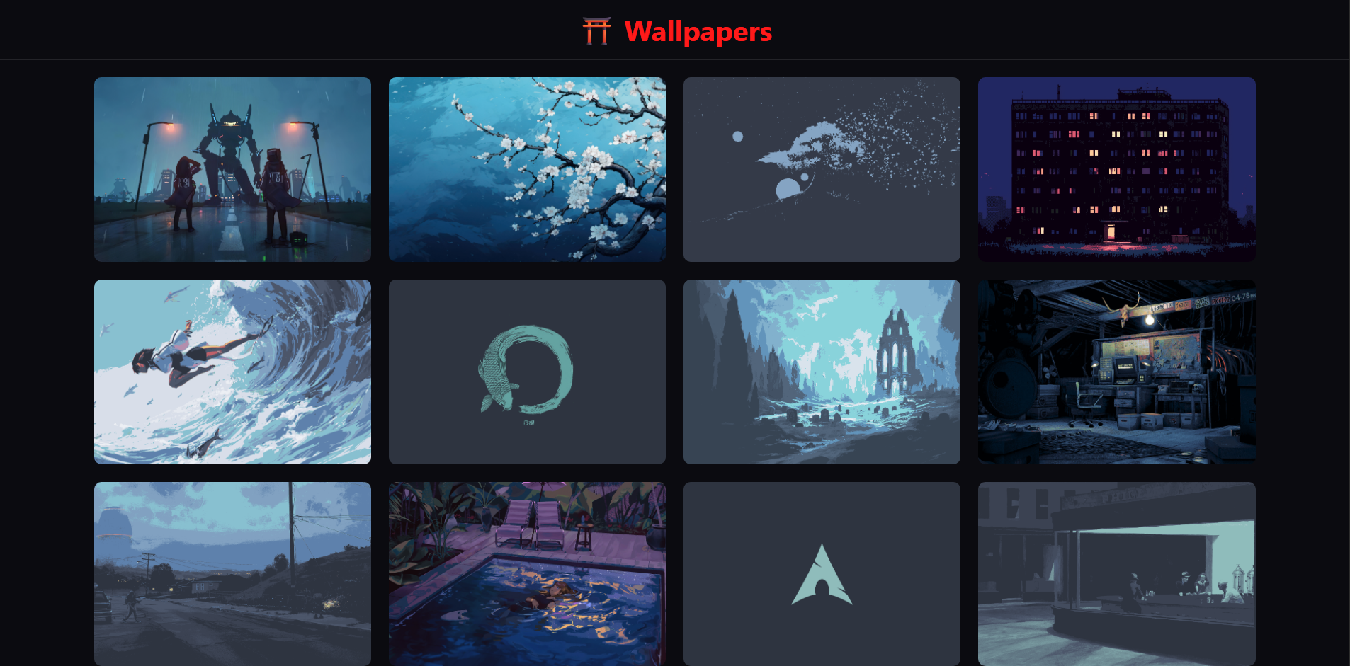 All these wallpapers come from different sources like Unixporn, Wallhaven, Reddit and Github. This repo is constantly growing, with new wallpapers added frequently