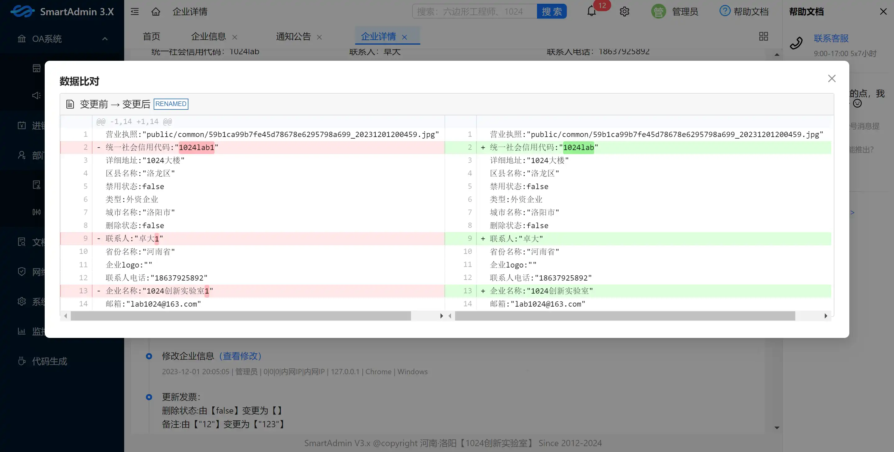 - 数据变更记录:支持基于git diff插件的数据变更记录,查看数据变化更直观方便