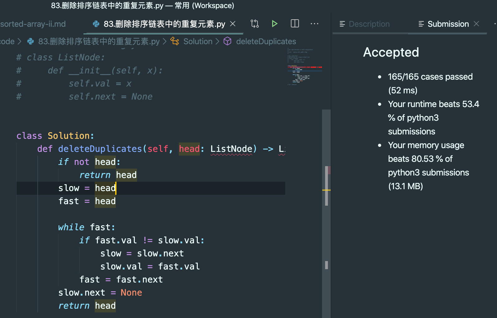 - 删除排序链表中的重复元素