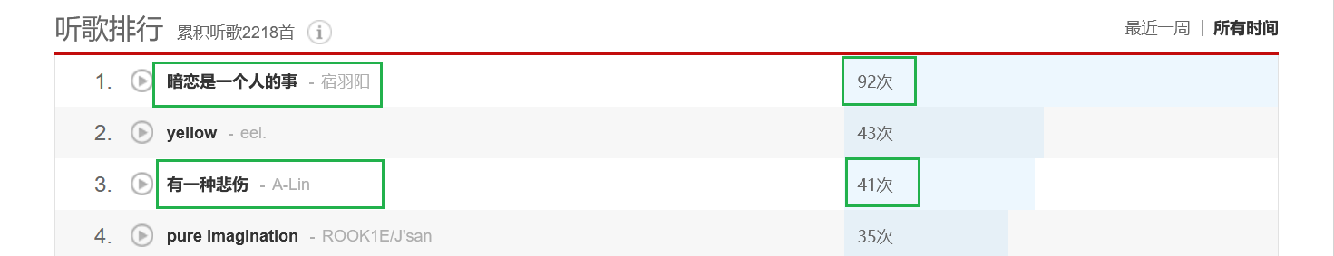 有人可能会问上面那个累计播放次数2218首没有变化,那是因为总数的累计播放只计算不重复的歌曲。