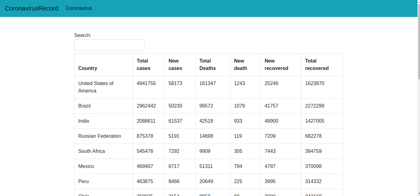 world Covid Info This app is made using Bootstrap, css , vanilla javascript and Covid API Features 2. It shows the data of covid aorund the globe