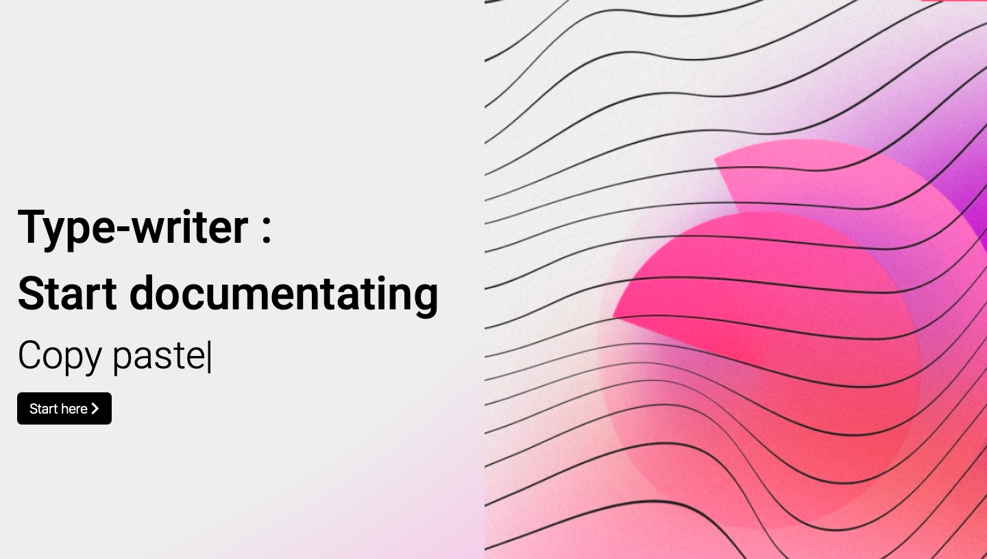Type-writer is a documenting web application with the support of many modern techniques to make documenting easier and faster. The web application itself contains clean and interactive UI making it easier to navigate. Some of the most promising features include markdown editing, copy pasting of images and resizing, mathematical equation formatting, syntax highlighter for code blocks etc. The application also contains user authentication through login/sign-up feature. Type-writer is also well equipped with version control to keep a track record for all saved versions of a file in the cloud. Users are also given choices in 3 different formats to download their files in local environment (i.e PDF format, text format, code block format).