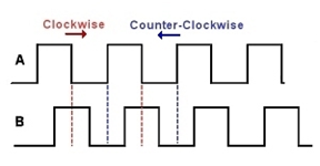 The direction is determined simply by checking the output signal B if it's equal to 1 (logical HIGH) in the moment of the interrupt (when output signal A is starting to send the logical HIGH signal), the position is counterclockwise, otherwise, if B is equal to 0 (logical LOW) it is counterclockwise direction.