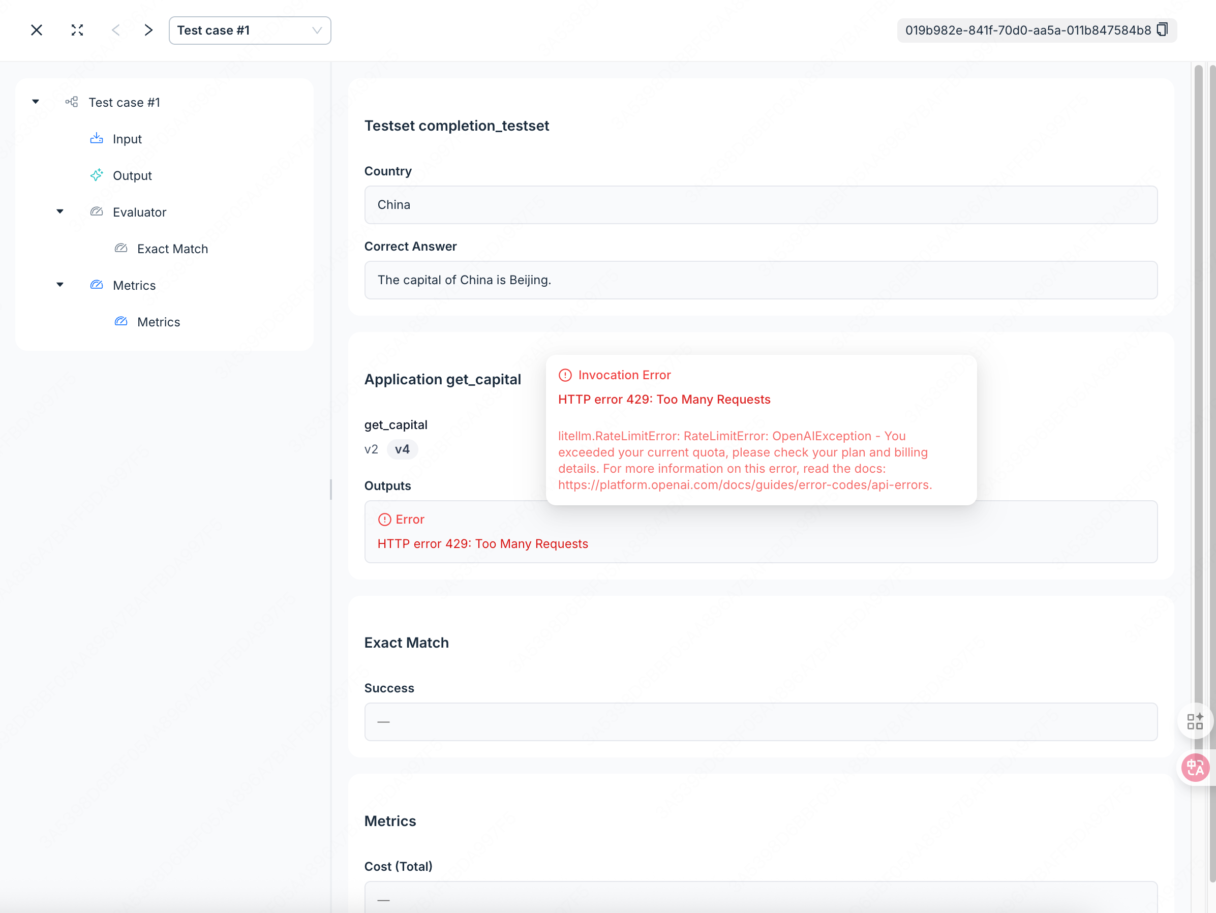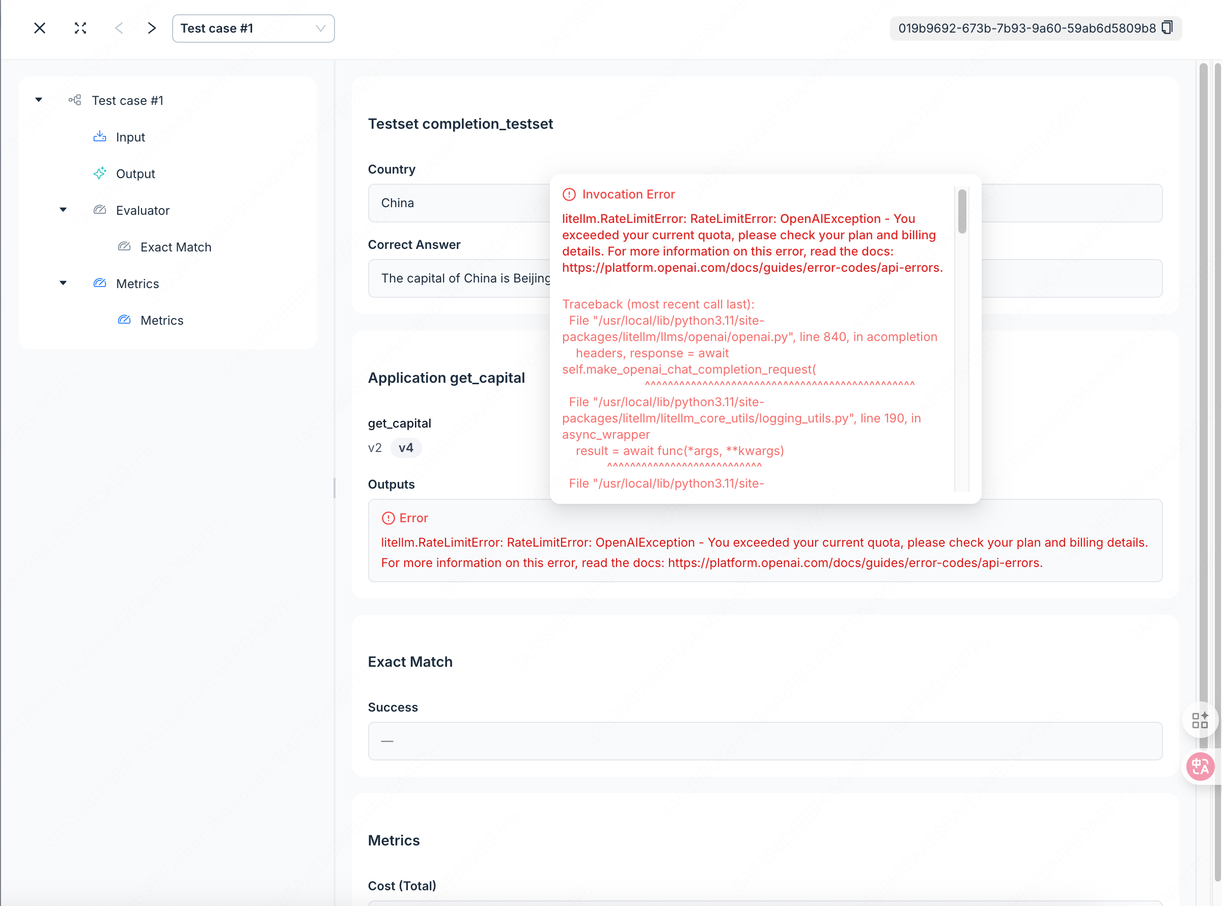 Thanks for your review, @ashrafchowdury. I appreciate your perspective on this issue. I also initially thought this was a frontend issue, but after tracing the request flow during debugging, I found the problem is actually in the backend error handling. The system has two evaluation modes with different architectures: Human Evals (frontend handles LLM invocation results)