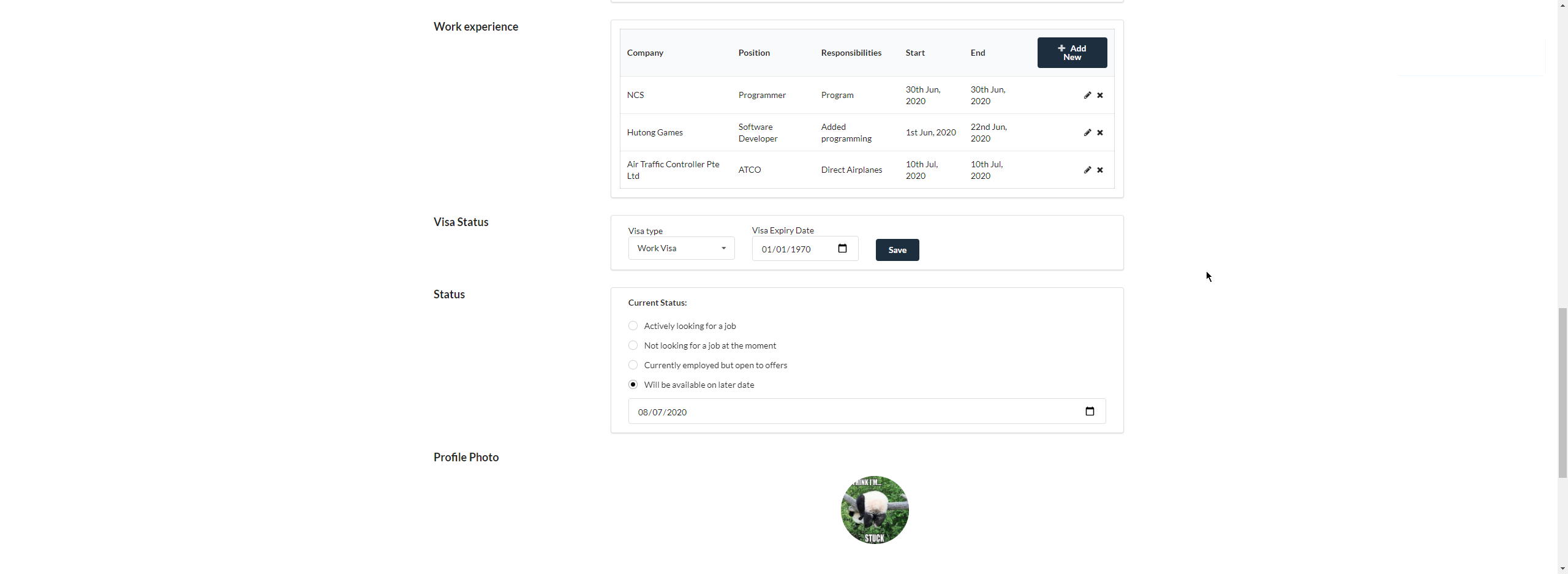 - Job seeking status