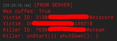 The Victim gets all necessary info to report the occurence to the server staff: