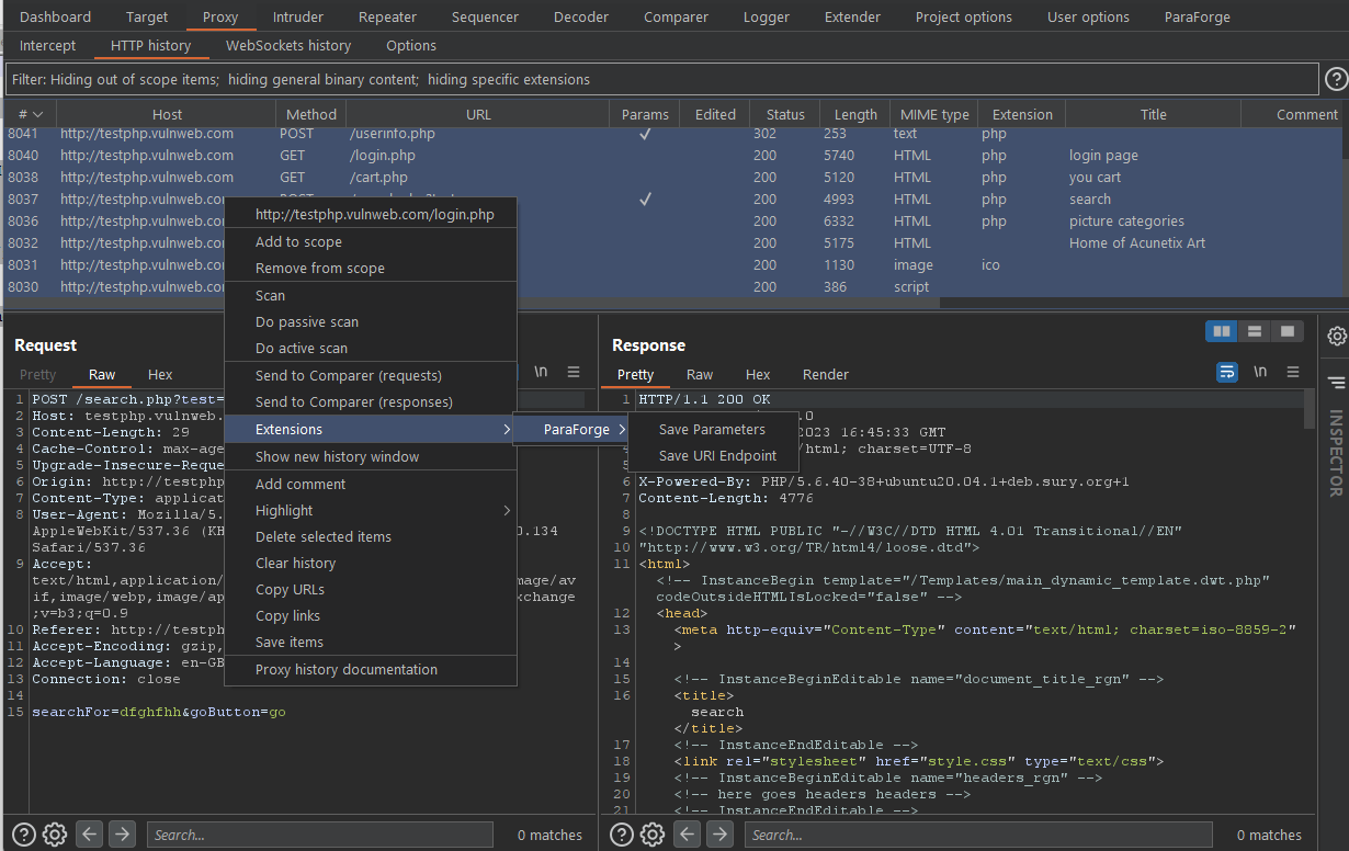 ParaForge is a simple Burp Suite extension to extract the paramters and endpoints from the request to create custom wordlist for fuzzing and enumeration.