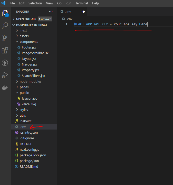 Hospitility_In_React To run this project on your local after cloning, you need "bayut.p.rapidapi.com" key from Rapid API Website. Create a .env file in your Root directory and use that API Key over there. For Example:- See below image