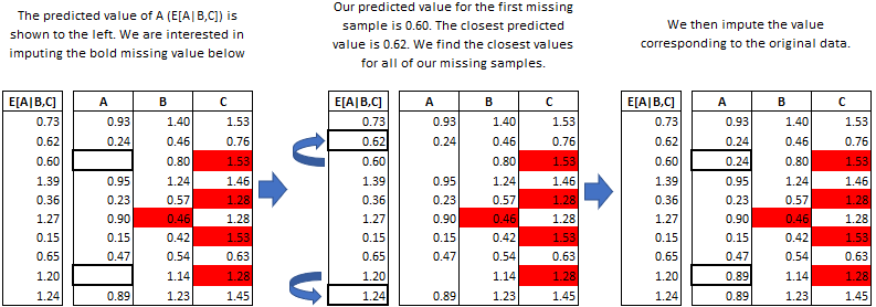 predicted value close to the predicted value of the missing sample