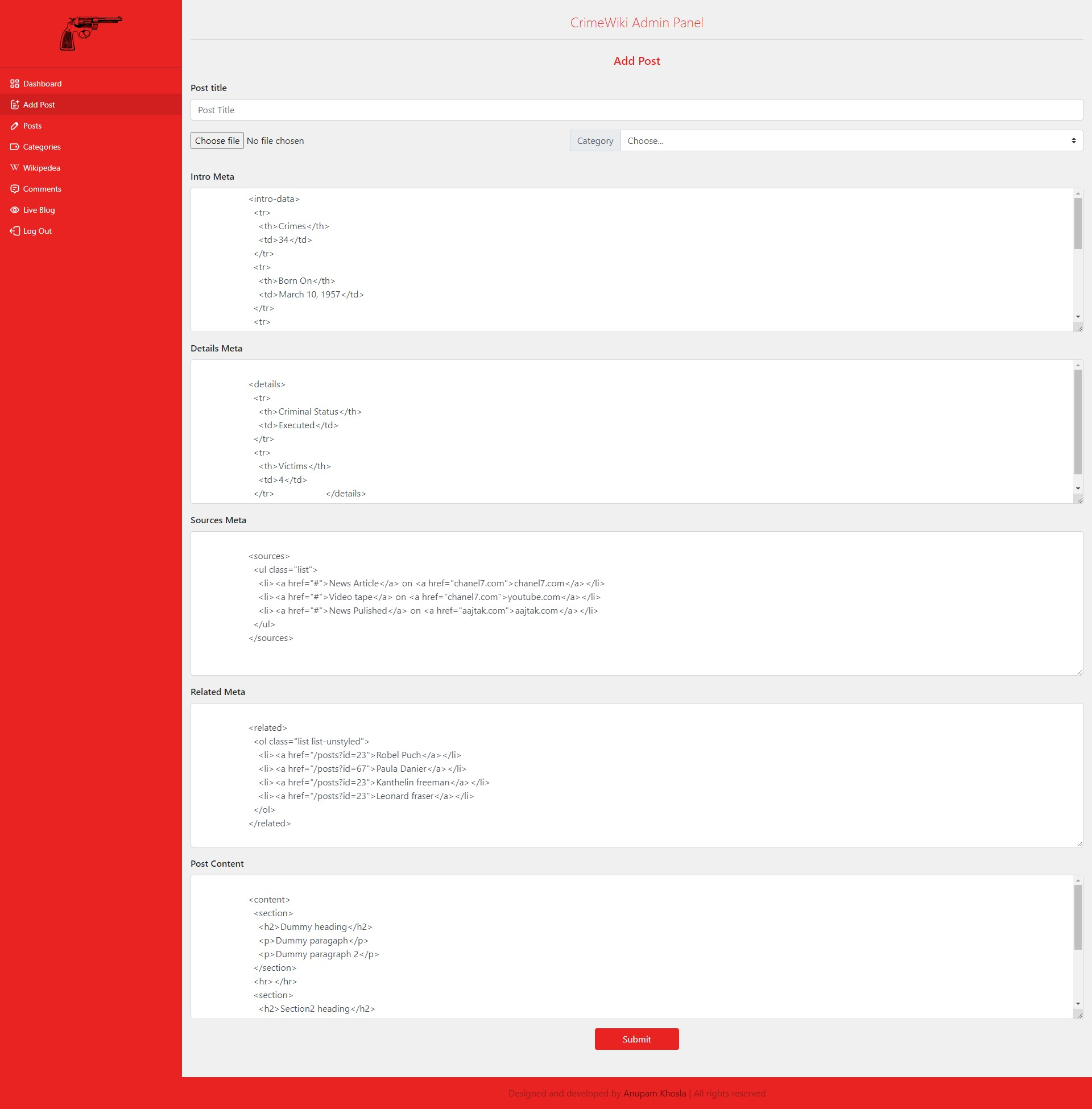- Addpost page: https://anupamkhosla.github.io/crimeWiki/assets/img/addpost.png