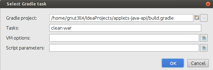 Le fichier war est compilé dans : build/libs/applets-java-api.war