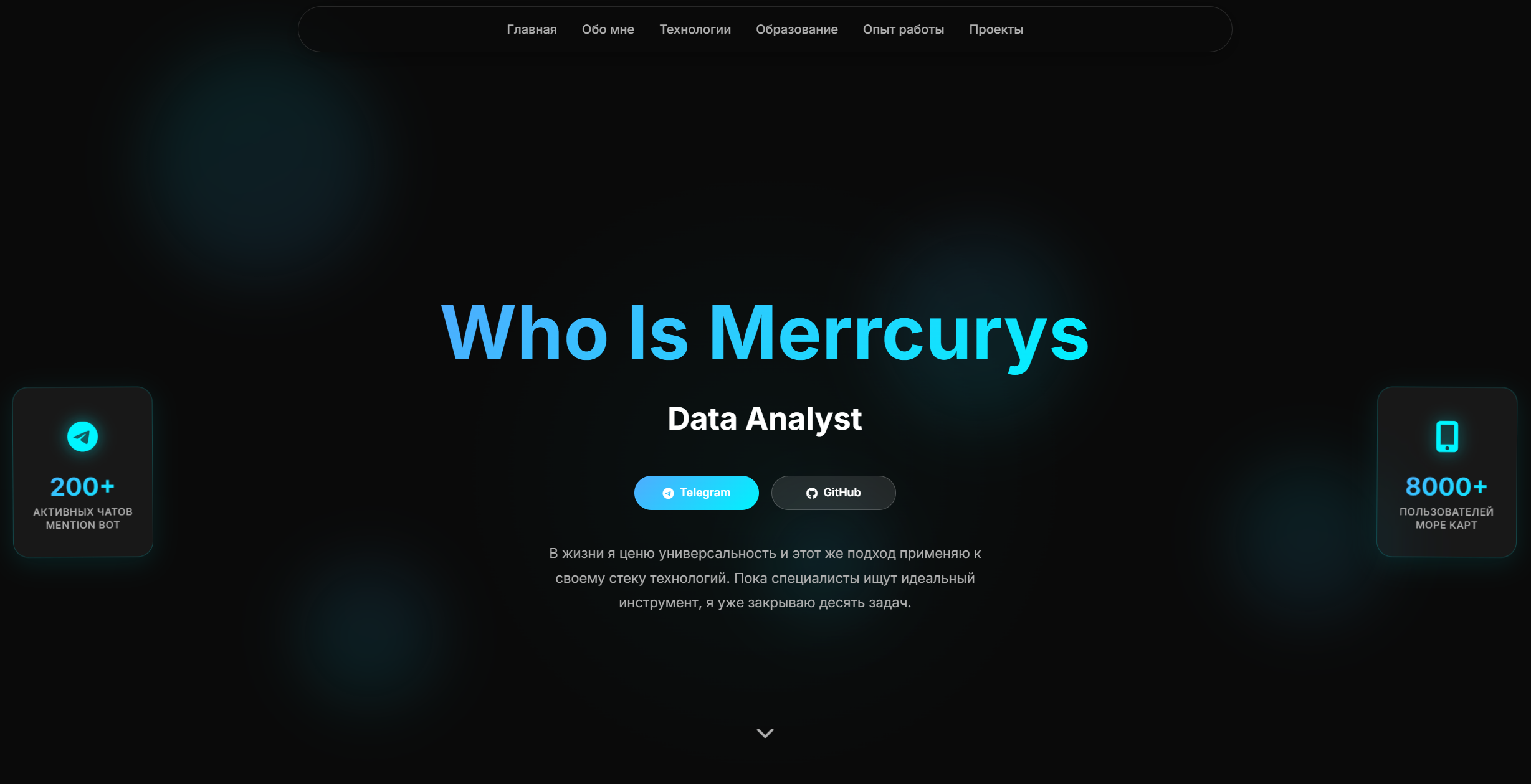 Мой личный сайт-портфолио, демонстрирующий мои навыки, образование, опыт работы и мои проекты.