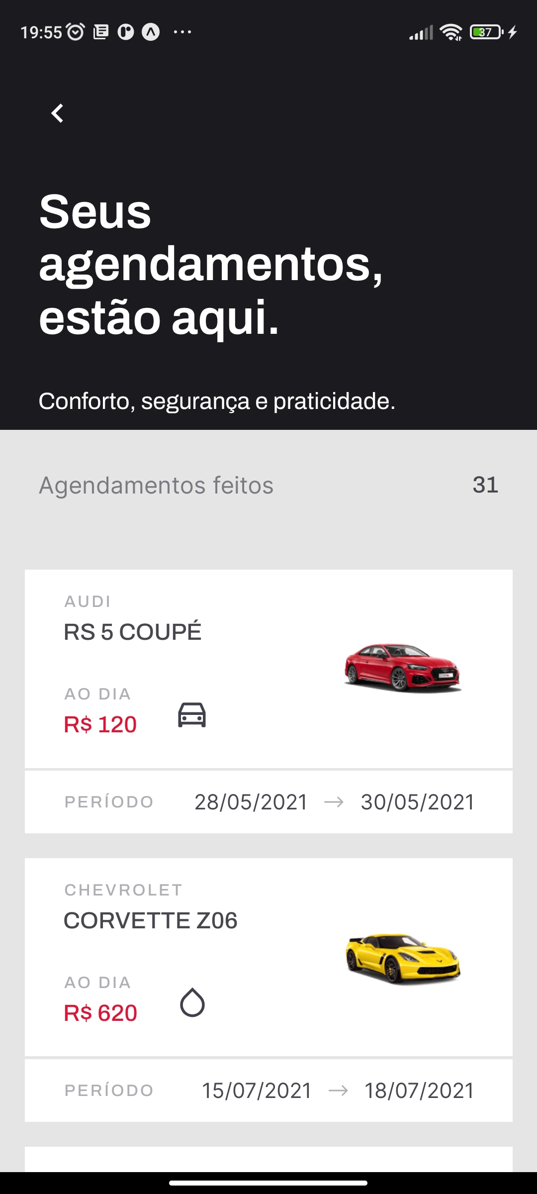 - Listagem dos carros alugados pelo usuário.