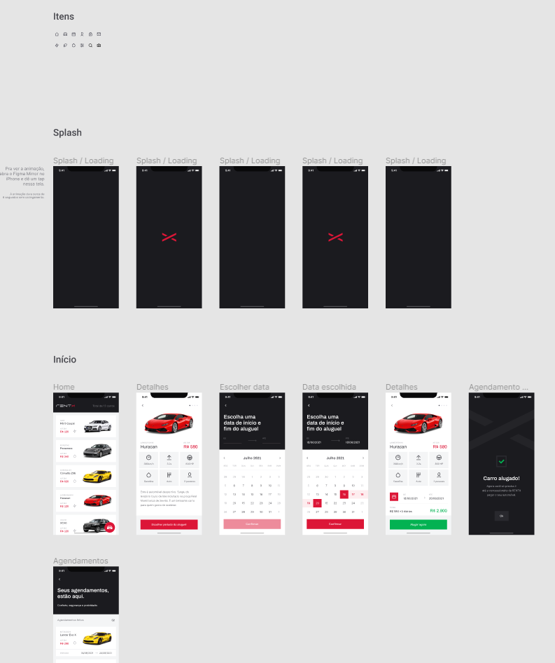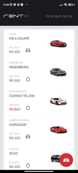 O projeto Rentx é um aplicativo mobile de a locação de veículos. Podemos listar os veículos disponíveis, agendar, e verificar os carros atualmente alugados pelo usuário. O projeto é desenvolvido com o framework com React-Native, e várias biliotecas como: React-Navigation para navegação em pilhas, JSON-Server como API para o back-end e toda teoria de como se chama as requisições de uma API RESTFULL, React Native Calendars para a seleção das datas, React-Native-Reanimated para animação dentre outras...