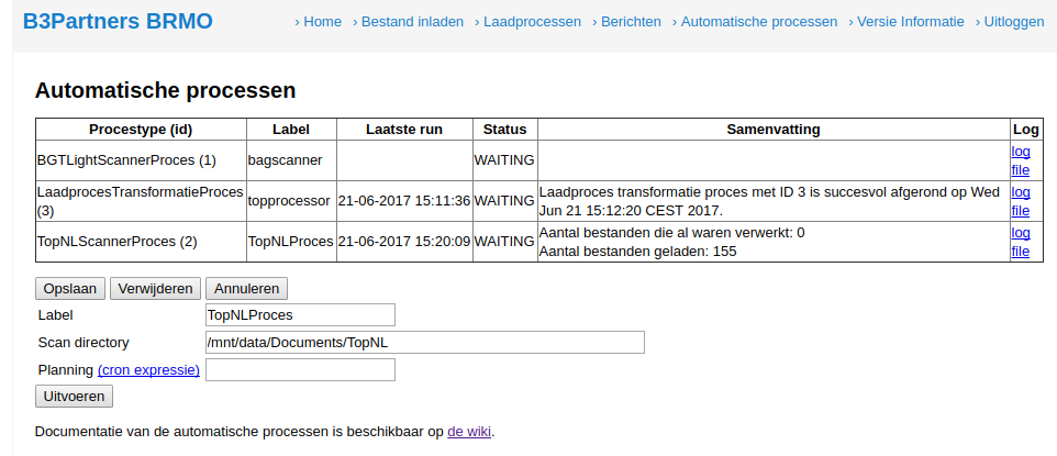 Het TopNLScannerProces is gemaakt om de BRT bestanden van het bestandssysteem in de database te kunnen laden.