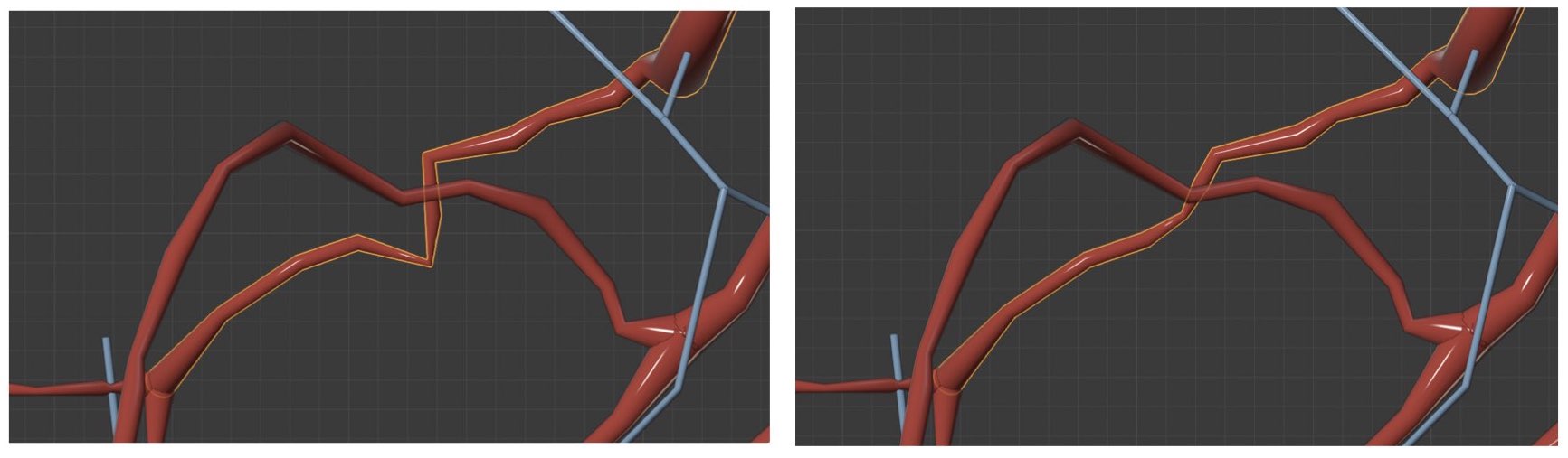 After identifying a broken sample from the sketched skeleton, the user can move it from one point to another. Select on the point (or sample) of interest using the right mouse click.