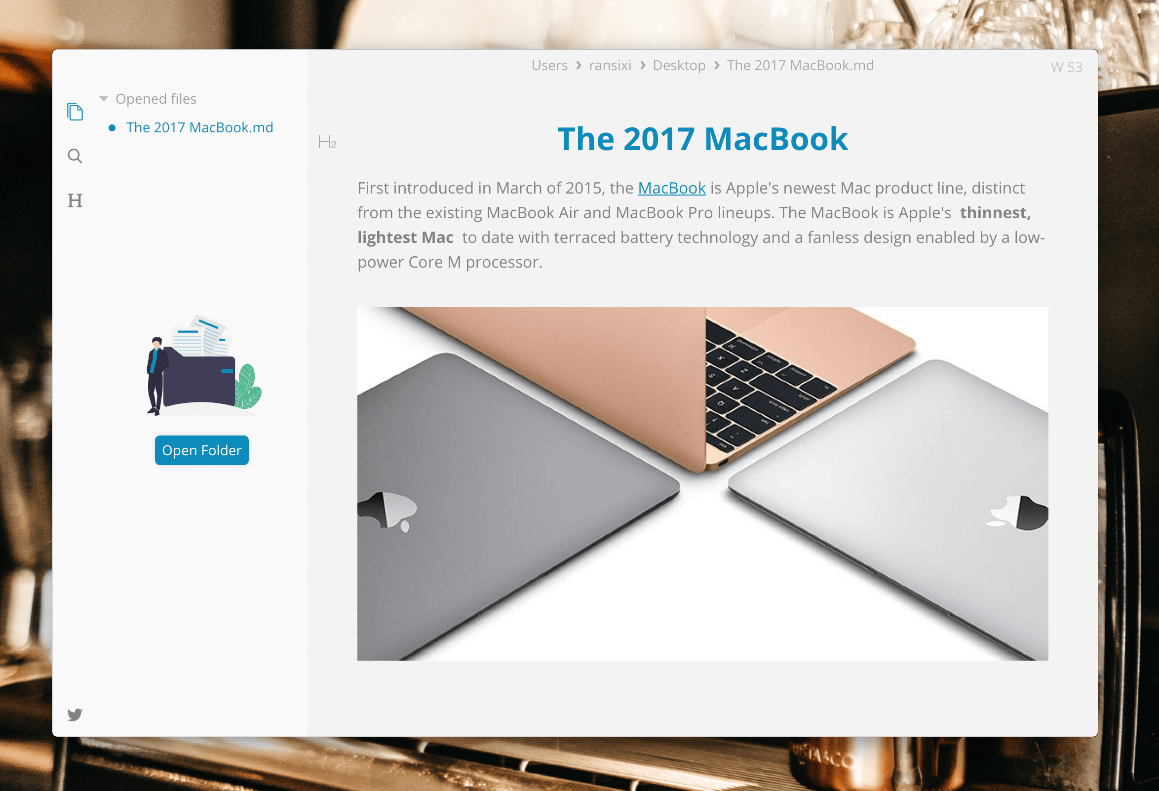 • Realtime preview (WYSIWYG) and a clean and simple interface to get a distraction-free writing experience.