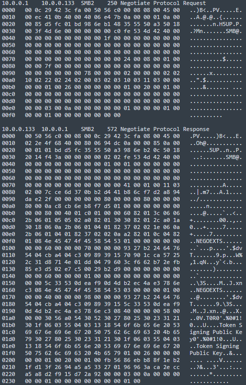 Packet request negotiate on the SMB protocol