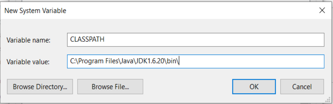 - Add CLASSPATH as the variable name and the path of files as the variable value.