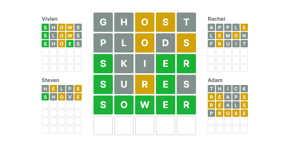 It's forked from Vue Wordle created by Evan You (@yyx990803), with some multiplayer and extra styling added. You can only see your opponent's letters after you've got the word of the day. Scores are saved at the end of the war, and a new Wordle becomes available at UTC±00:00 every day. It features a dark mode and a colourblind mode.