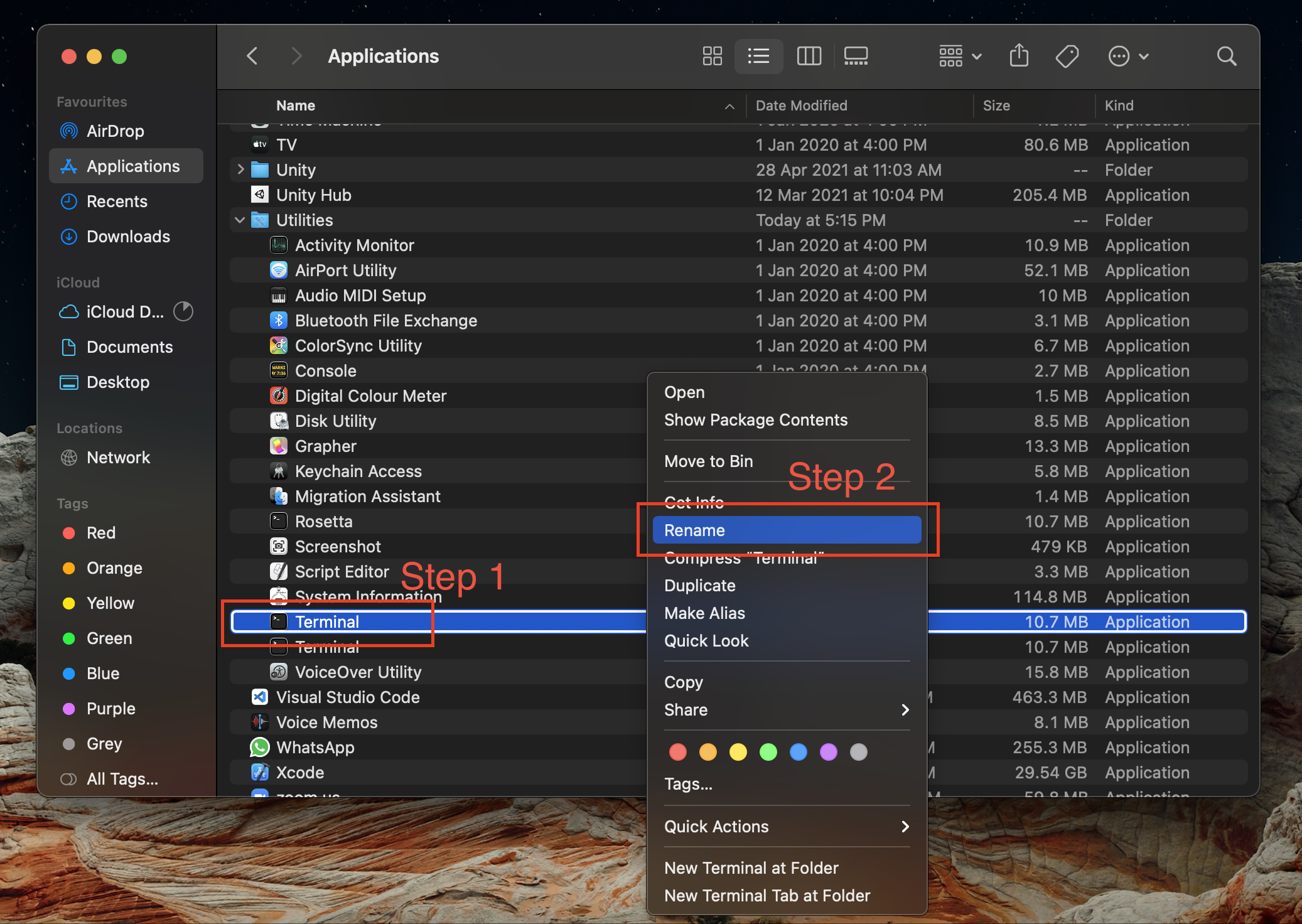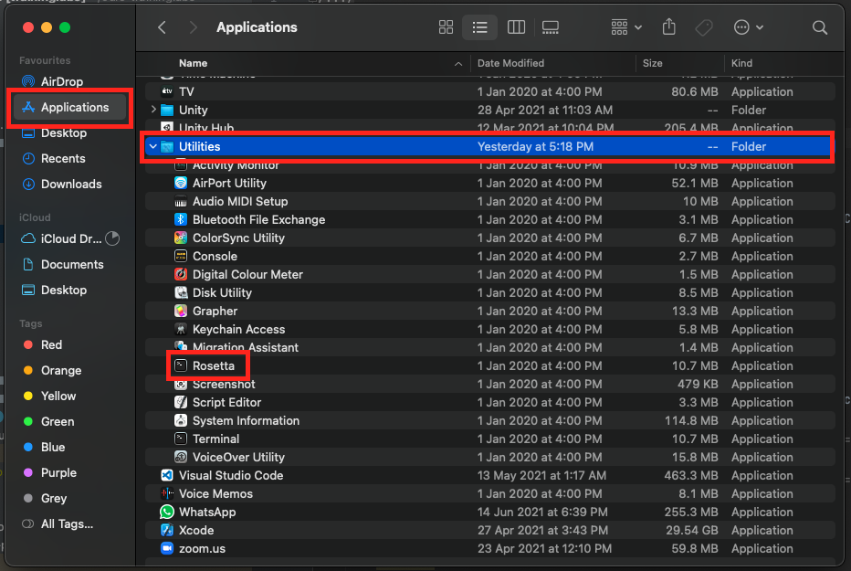 Open the Rosetta Terminal in Application.