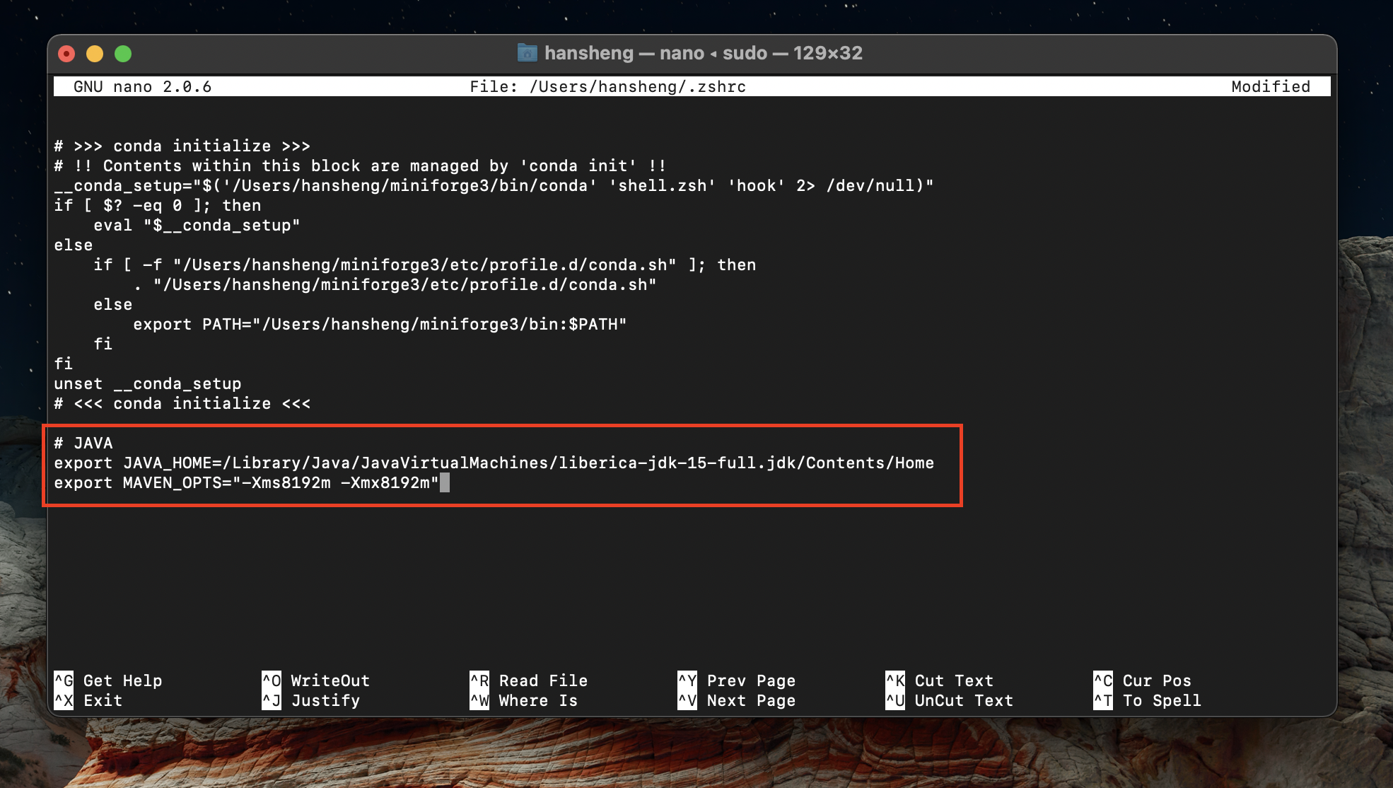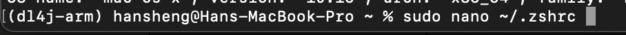 sudo nano ~/.zshrc, and press enter.