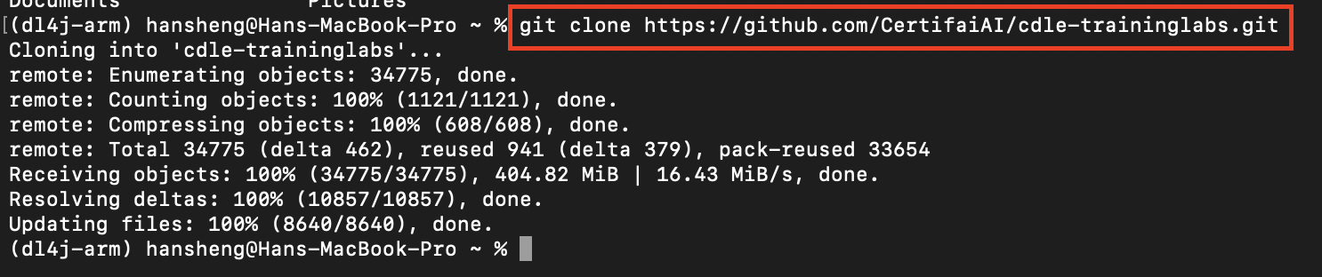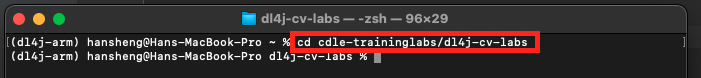 cd cdle-training-labs/<root folder name>. Root folder name can be obtain in Step 4. In my case, I'll run CNN in dl4j-cv-labs.