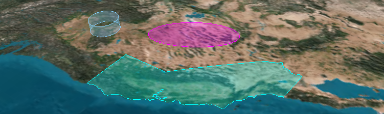 We use geometric algorithms to compute triangles composing shapes on the globe such as circles, ellipsoids, polygons, etc. We then use the triangles to draw the shape using WebGL.