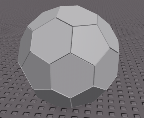 It was definitely possible that perhaps my math was incorrect, but I decided that I would try out a triangle-based approach and compare the two. From this point on, I figured out the order of vertices that I needed to draw each triangle (3 per pentagon, 4 per hexagon, with 2 WedgeParts per triangle), and drew in each face.