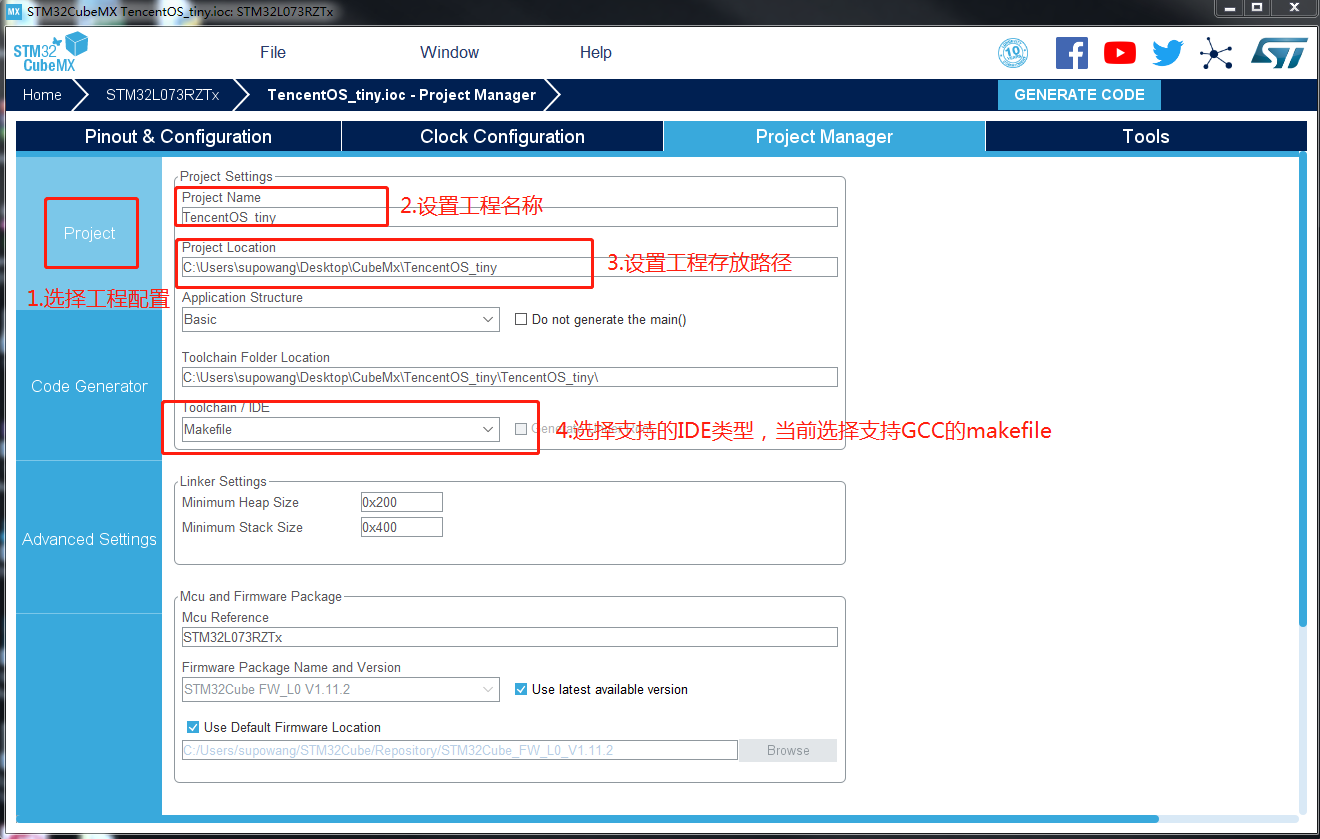 CubeMX安装完成后,我们就可以使用CubeMX来给NUCLEO-L037RZ开发板生成裸机工程了,如果您的芯片不是STM32,而是其他厂商的ARM Cortex M系列,您可以根据产商的指导准备裸机工程,后续的内核移植步骤是一致的。