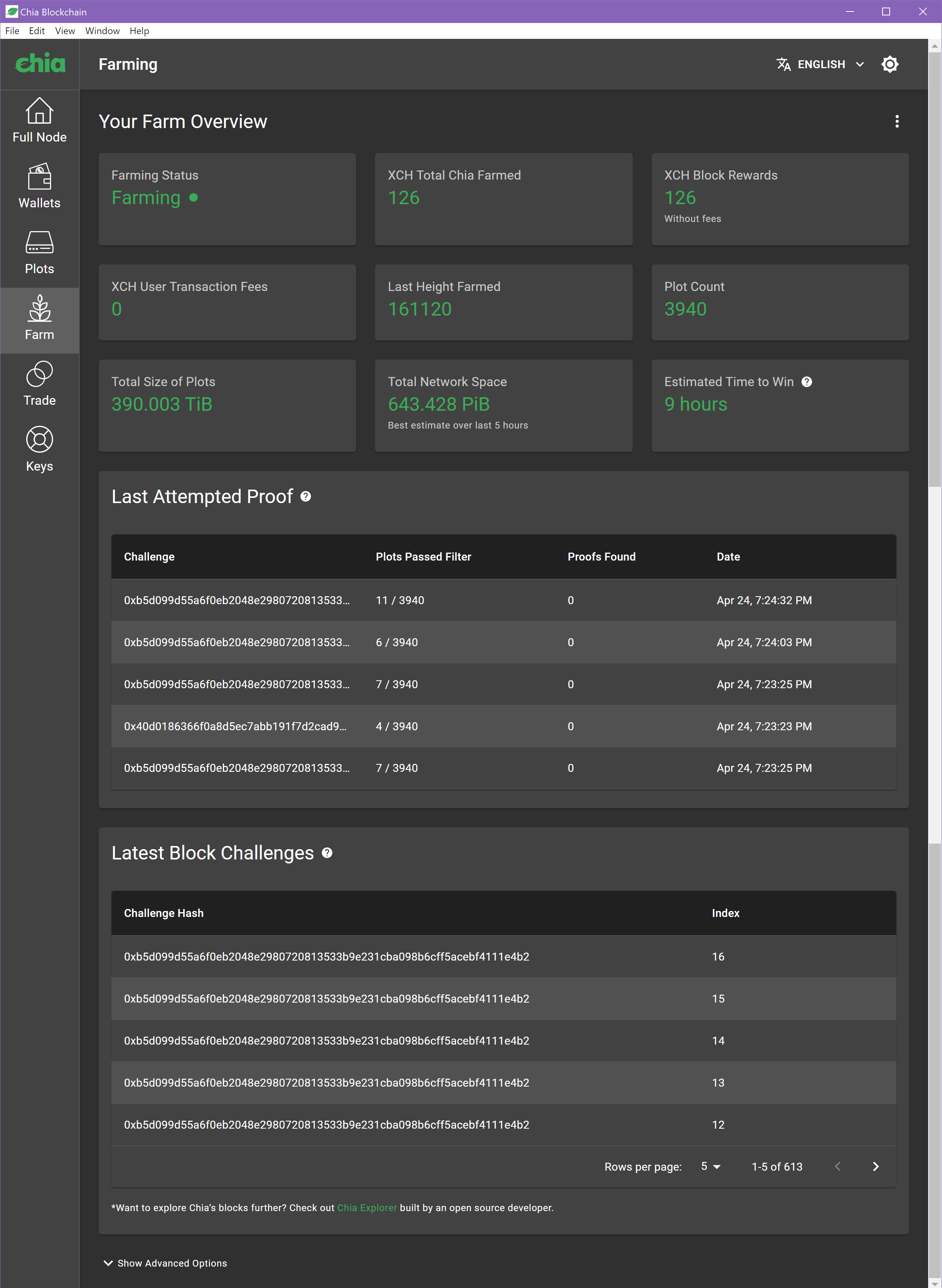 It's unfortunate that this didn't surface better. It seems that in almost any system it's difficult to balance the correct level of logging so it's useful. However, I'm mainly just jealous of your 400 TB of plots. I'm also scared that the total pool has added more than 600 PB and doubled in less than a week. |