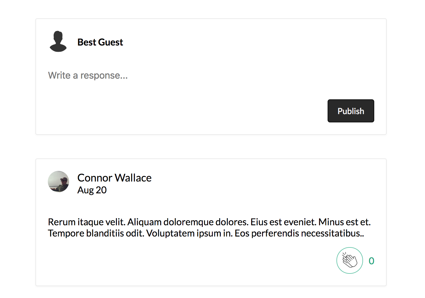If a user enjoys a story or comment, they can clap for it. Claps are generated continuously up to a limit of 20 per user, and saved to the database periodically so as to reduce the number of POST requests.