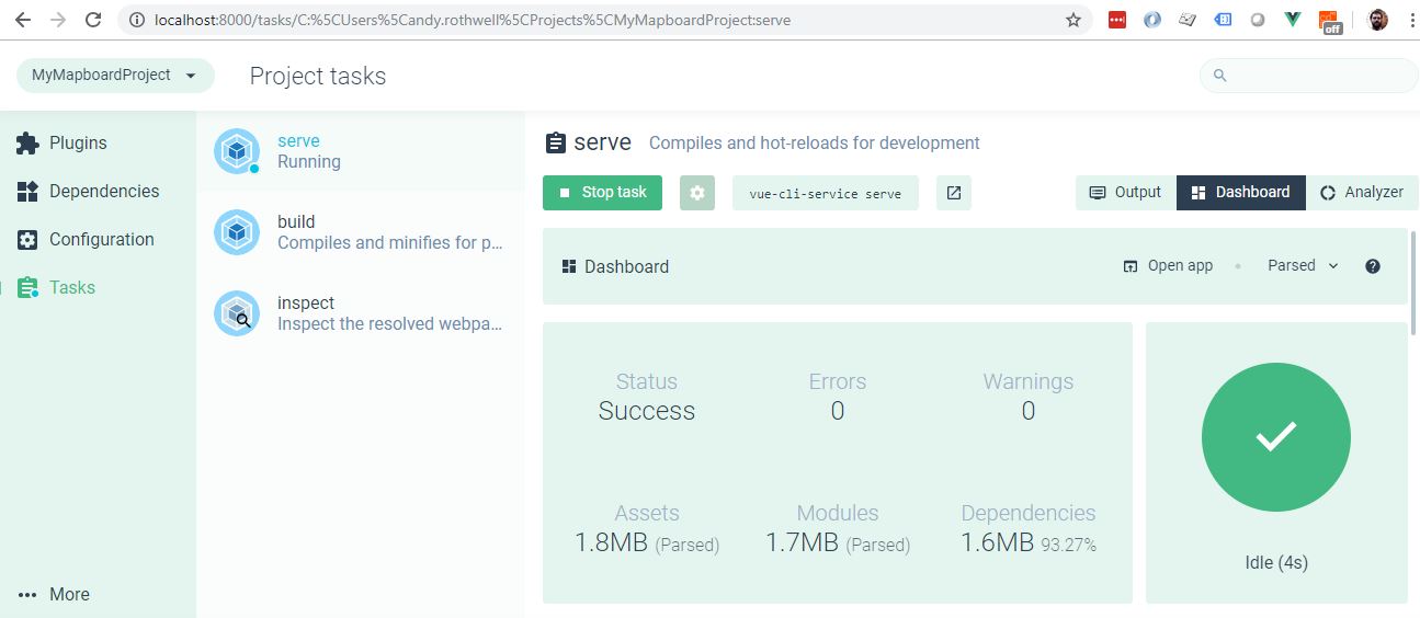 After you have completed creating a project, your Vue UI Vue Project Manager page will show your project (it may be the only project, the example below has many).