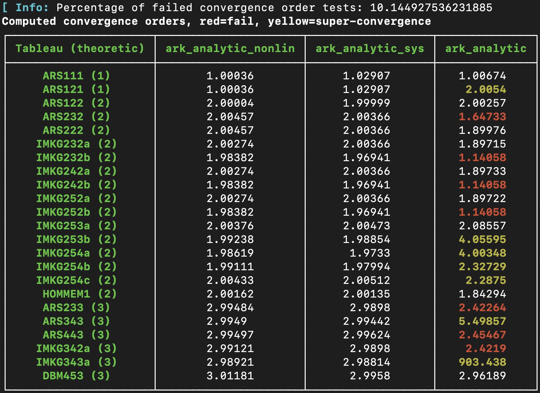 | 127 | + title = "Computed convergence orders, red=fail, yellow=super-convergence", |