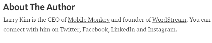 Here’s an example which includes more information about the writer on the post. You can also include ways through which people can connect with you.