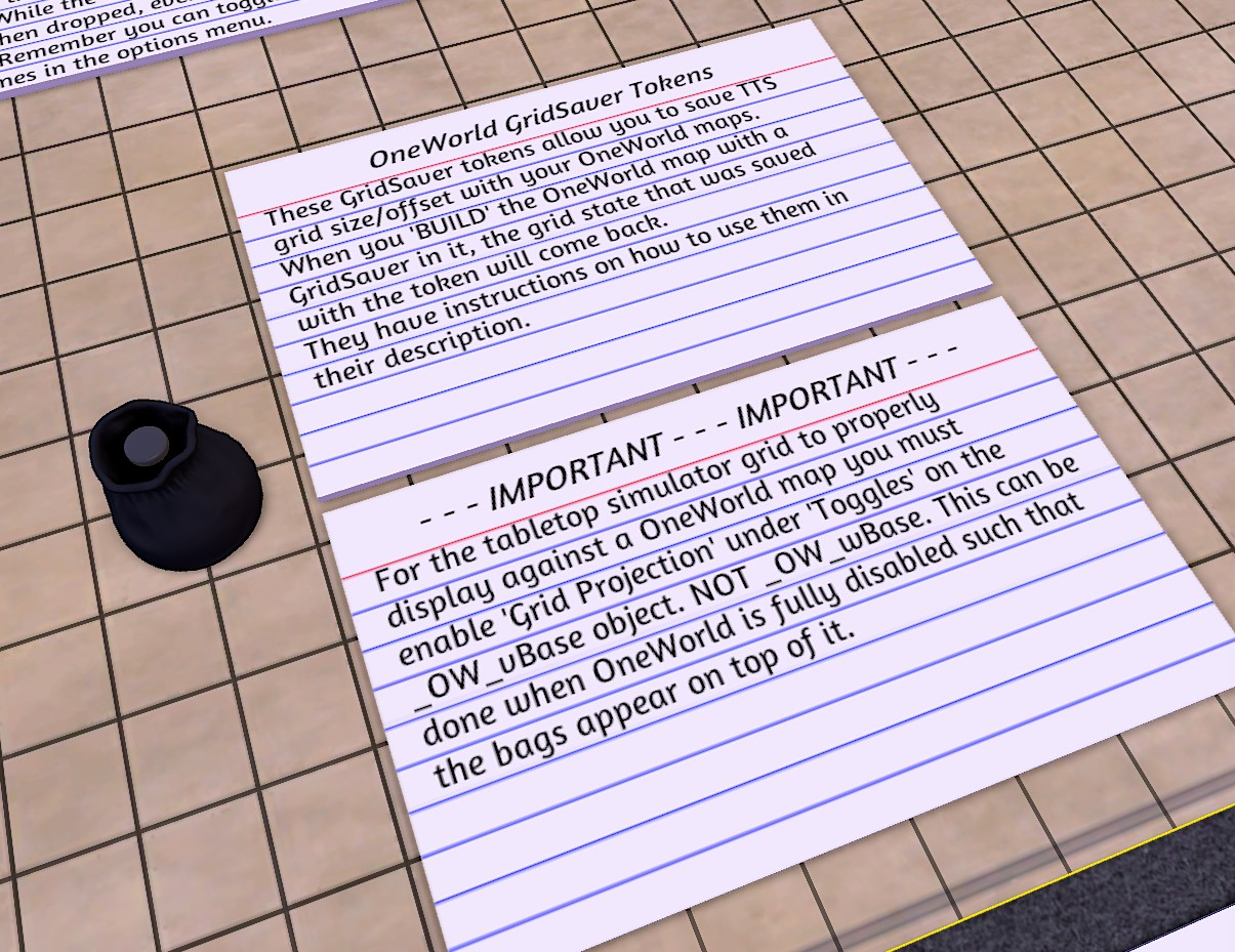 - These GridSaver tokens allow you to save TTS grid settings with your OneWorld maps.