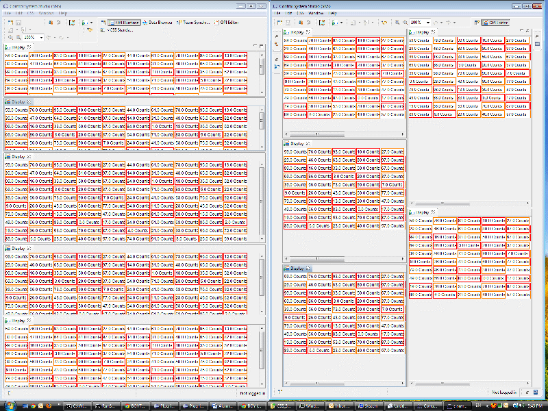 OPI: Two CSS windows; Each has 5 OPIs; Each OPI has 4 XY Graphs and a Intensity Graph with a waveform PV which contains 80000 points of data updated at 1Hz.