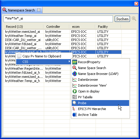 The namespace browser is available in two variations. One requires the same LDAP-Server as the namespace-search-tool and the other builds directly on the TINE protocol. The handling of both versions is equal. Pro level, a list of all items is displayed, it can be limited by a search pattern. If an item is selected, the corresponding elements in the next few levels are displayed.