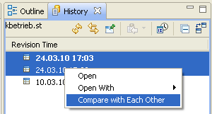 The History View will open, giving you access to previous versions. For example, select the versions you want to compare and start a comparison: