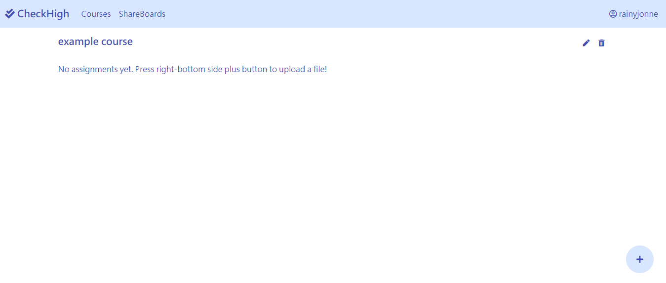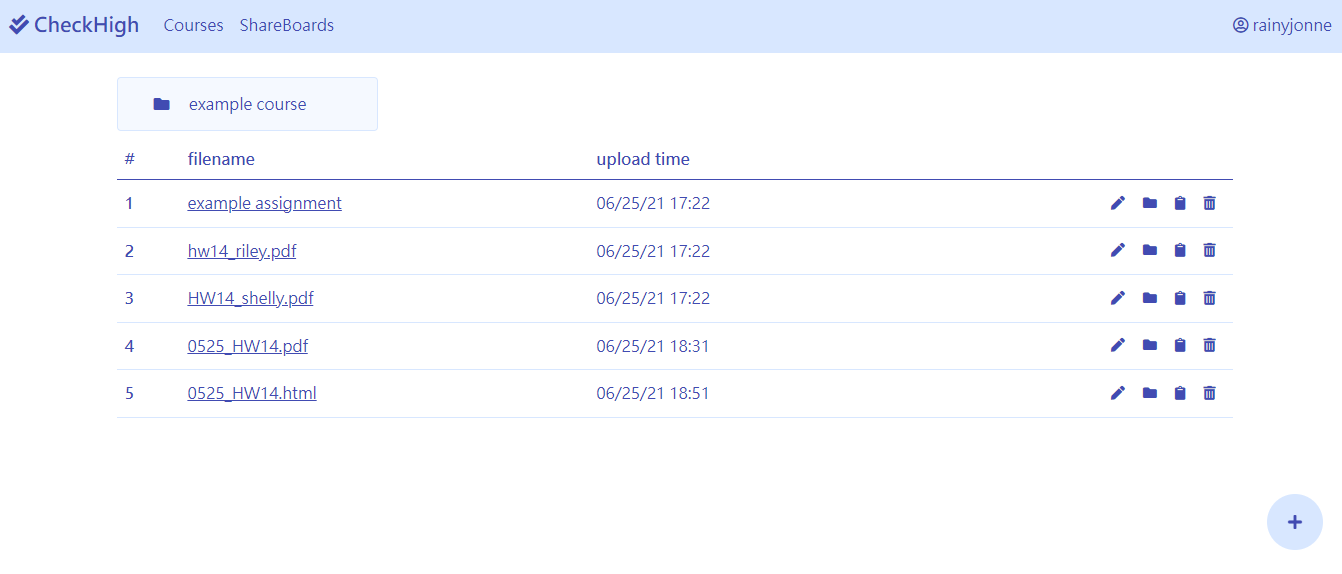 - You can upload your assignment to a specific course or to just simply upload it by the plus button. You can also rename your assignment, delete it, add it to exist shareboard or move it into a course folder.