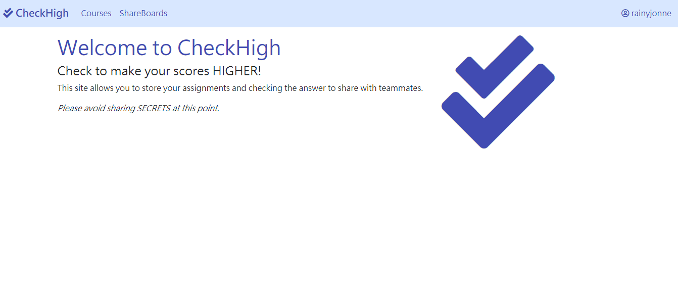- Hope you have a fantastic journey using CheckHigh! :)