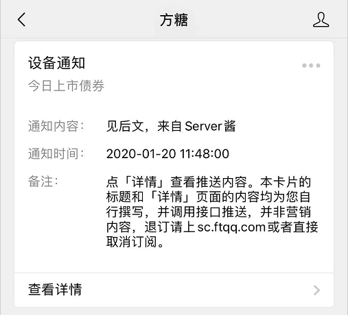 登录到Server酱,绑定微信之后,获取到sckey即可,样式如下