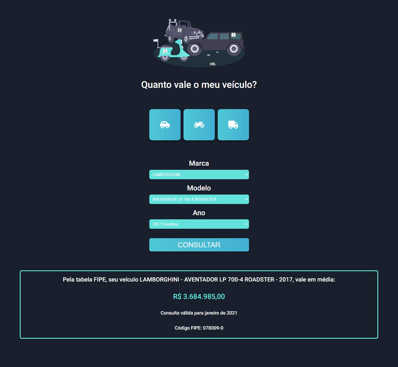 A web app for consulting FIPE API (list car price), created with HTML, CSS & Javascript.
