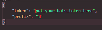 Place your bot's token between the quotation marks, you can also edit the prefix if you'd like.