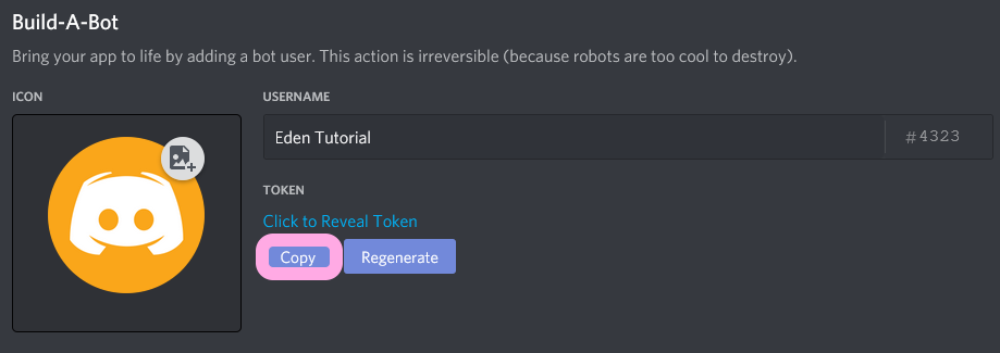 Get your bots token. Reminder, bot tokens are key information that gives complete access to your bot.
